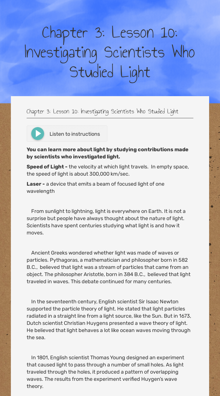 Written by teachers for teachers and students, the physics classroom provides a wealth of resources that meets the varied needs of both students and teachers. Scale freezing point of water boiling point of water celsius 0°c 100°c fahrenheit 32°f 212°f kelvin 273k 373k fill in the table below with the correct scale and unit. How do rock particles move during the passage of a p wave through the rock? Back and forth parallel to the direction of wave travel back and forth perpendicular to the direction of wave travel in a rolling circular motion the particles do not move. The average kinetic energy of particles in an object. Joule is the standard metric unit of energy. Detailed studies of what earthquake allowed researchers to develop the elastic rebound theory?. Touching objects within a system reach the same temperature define the zeroth law. The 1906 san francisco earthquake.